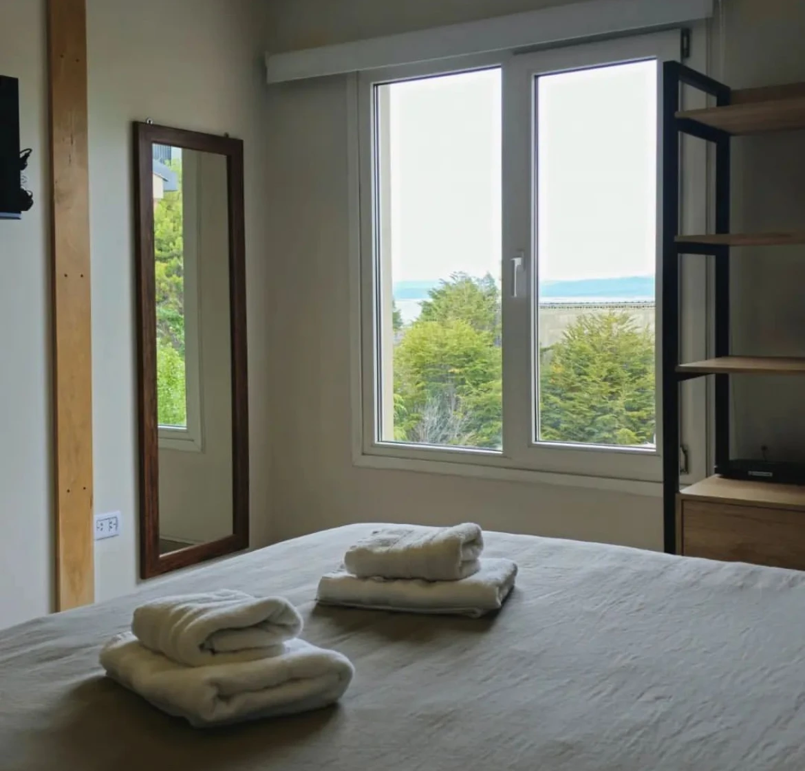 Amenities & Servicios: Acceso por ascensores, vista a la bahia de Ushuaia, completamente amoblados, Wi-Fi sin cargo en todo el establecimiento,, TV, Calefacción individual por departamento, Platos y cubiertos utensilios de cocina y juego de ollas, Secador de pelo, Ropa Blanca – recambio de ropa blanca (opcional).